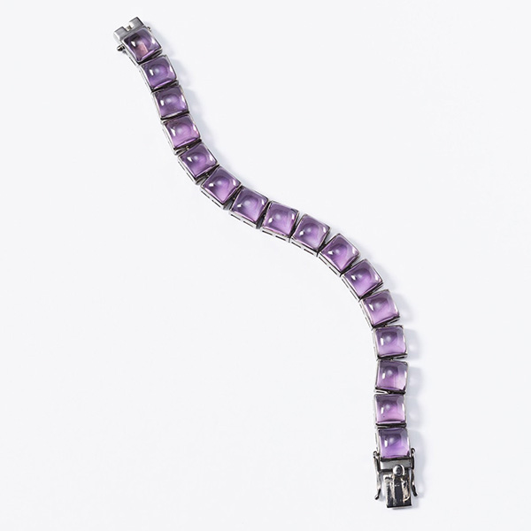 Top: Large Tile Tennis bracelet with amethyst in sterling silver with black rhodium finish, $1,275; Nakard