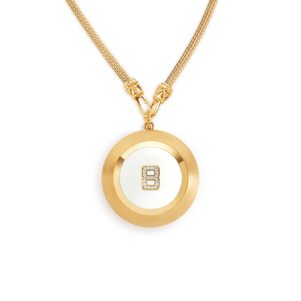 Earlier this month in Las Vegas, the Parisian designer unveiled her Magic Ball necklace, an 18k gold orb with the same functionality as the 1950s original and the same “8” on front—except this time the number is rendered in diamond pavé and framed by a backdrop of white enamel. (The style also comes in a hand-enameled guilloche version in green, pink, or red with rainbow sapphires.)
