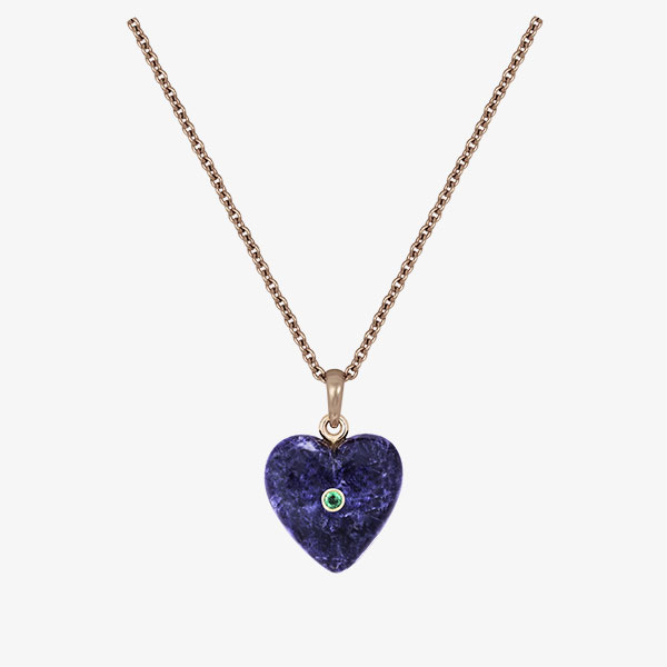 Rather than treating the symbol seriously, these talented makers are taking their cues from pop art, resulting in a slew of stylized hearts featuring offbeat materials (Alina Abegg’s blue glitter enamel earrings), unexpected gemstones (Nana Fink’s sodalite heart pendant), and intriguing silhouettes (FoundRae’s scallop-edge True Love bracelet).