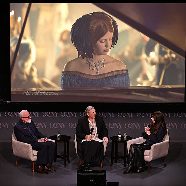 The 92NY audience loved hearing about a detail on an original carnelian red rosary that Goth wears in the movie’s wedding scene: Young told them that Tiffany engraved Elizabeth, the name of Goth’s character, on the back of the cross using author Mary Shelley’s handwriting, as seen in her Frankenstein manuscript. The nerdy note earned buzz live and on social media later.