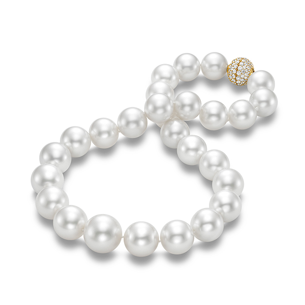“It’s the epitome of what a perfect South Sea pearl necklace should look like,” Fran Mastoloni, a partner at the 92-year-old firm, tells JCK. “All the pearls are Australian, and they’re as good as I’ve ever seen. They’re beautifully clean, the skins are lovely, and they have a nice white-pink rosé color with a very fine luster.”