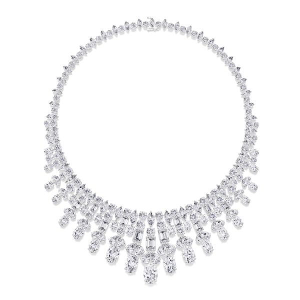 Top: Monaco necklace in 18k gold with 154.36 cts. t.w. lab-grown diamonds, $129,600; Grown Brilliance