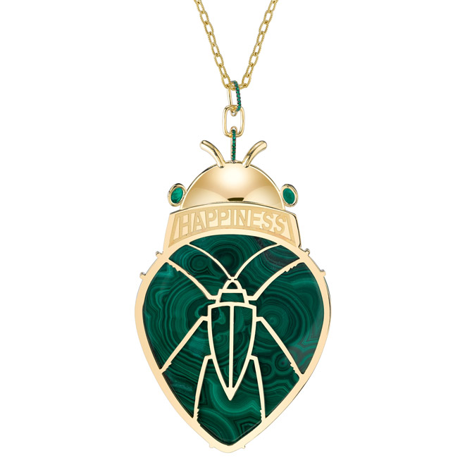 Well, it just keeps getting better. Exhibit A: La Grandiosa, a malachite beetle pendant that simply takes your breath away.