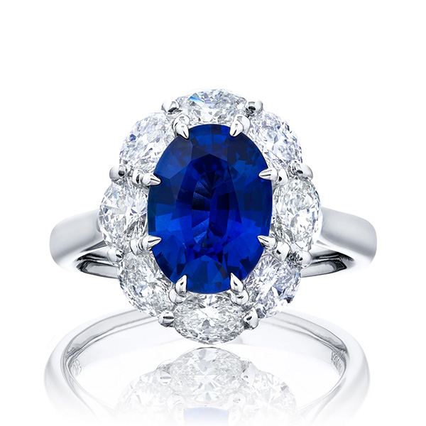 Our bridal business is strictly diamond. We very rarely put a colored gemstone in the center. If anything, it would be on the sides, like a very classic diamond center with sapphire sides. We do very well with colored gemstone bands that people can either stack with other bands, wear on the right hand, or stack with a bridal set.