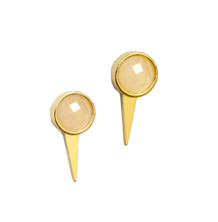 Nagasu, dressed in a bright red skating dress, had on a pair of Hou’s $89 micron-plated Fire Ear Jackets, which feature round quartz stones and a cool little gold spike, when she pulled off the momentous jump.