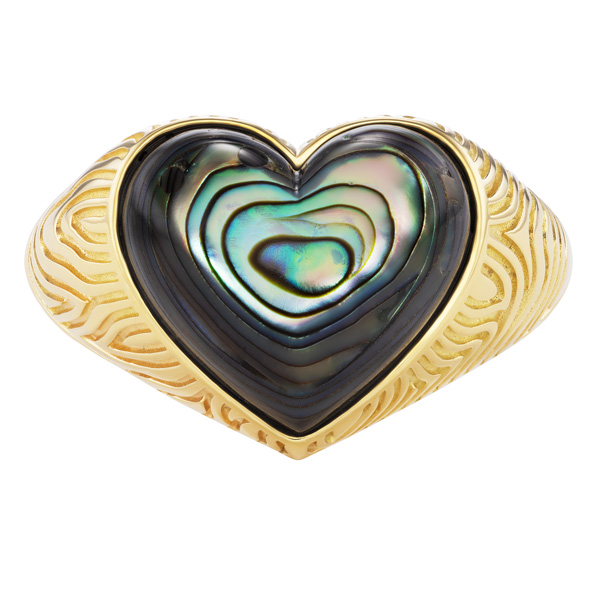 Top: Ripple ring in 18k yellow gold with abalone, $5,200; Emily P. Wheeler