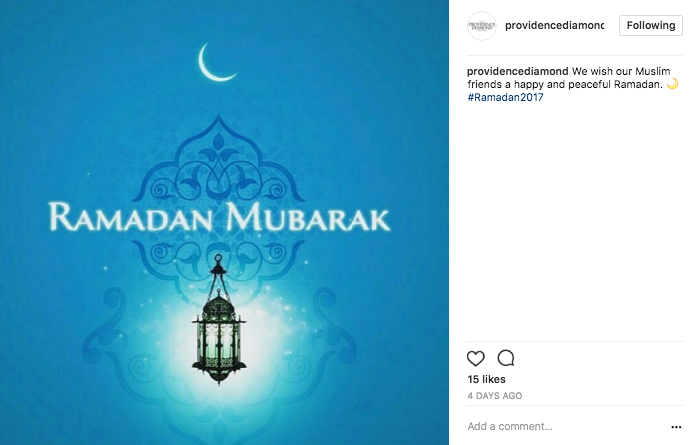 Jewelry and holidays go together like sterling silver and turquoise—so as a retailer, never let one pass you by without hyping it, especially on Instagram. You never know what will compel a client to buy jewelry as a gift. Providence Diamond does a great job of marrying the right jewelry with the right holiday (see the diamond rings against the American flag for Memorial Day, above). Celebrating all holidays also relays a message of inclusiveness: Check out the retailer’s wish for a happy Ramadan, above.