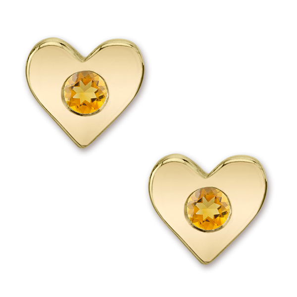Top: Birthstone Heart Stud earrings in 14k yellow gold with citrine, $120 each or $240 for pair; The Fête