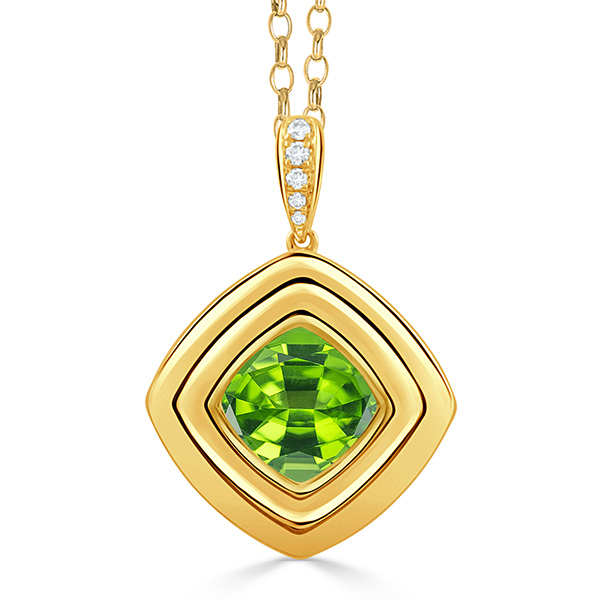 Top: Pendant with 2.27 ct. peridot and 0.05 ct. t.w. diamonds in 18k yellow gold, $2,860; Doves by Doron Paloma