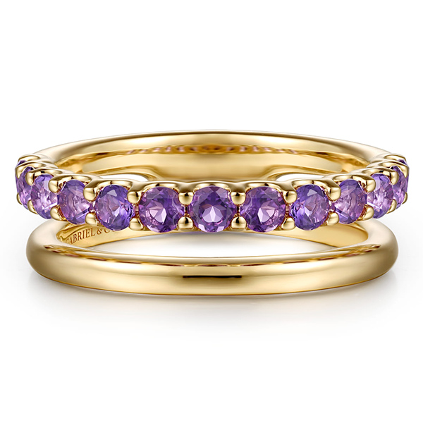 Top: 14k yellow gold amethyst ring, $1,325; Gabriel & Co.