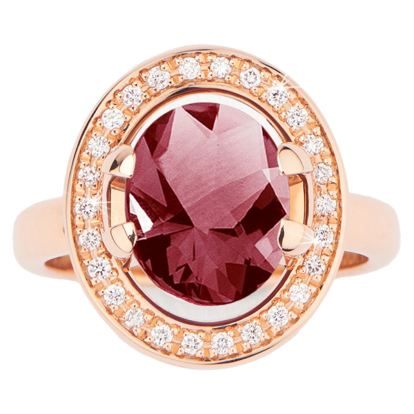 Top: Ma Préférence ring with 3.5 ct. rhodolite garnet and 0.1 ct. t.w. diamond pavé in 18k rose gold, $6,356; Poiray Paris