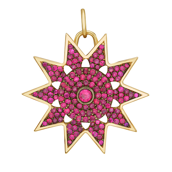 Top: Lumière star charm with 1.22 cts. t.w. rubies in 14k gold with black rhodium, $3,385; Lionheart