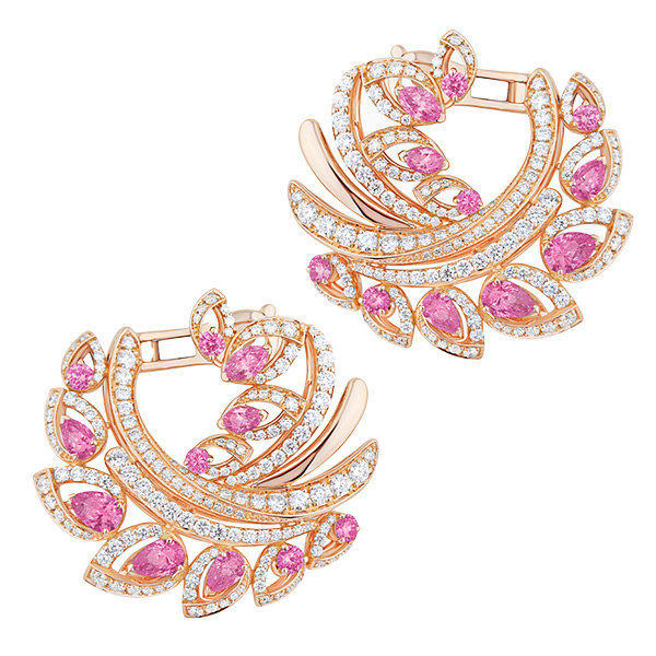 Top: Edenia earrings with pink sapphires and diamonds in 18k rose gold, AED 32,000 ($8,713); Bijouq