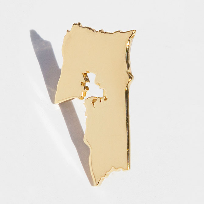 “Gerrymandering has been around for 200 years, but has seen a resurgence since 2011 with sophisticated mapmaking technology,” says OMG WTF founder Ben Sheehan, who has been eyeing the situation closely. The idea for Gerrymander Jewelry occurred to Yuspeh, says Sheehan, in September of last year, after noticing that people outside of her political world were beginning to pay attention to, and become invested in, “what the midterms really meant after President Trump was elected.”