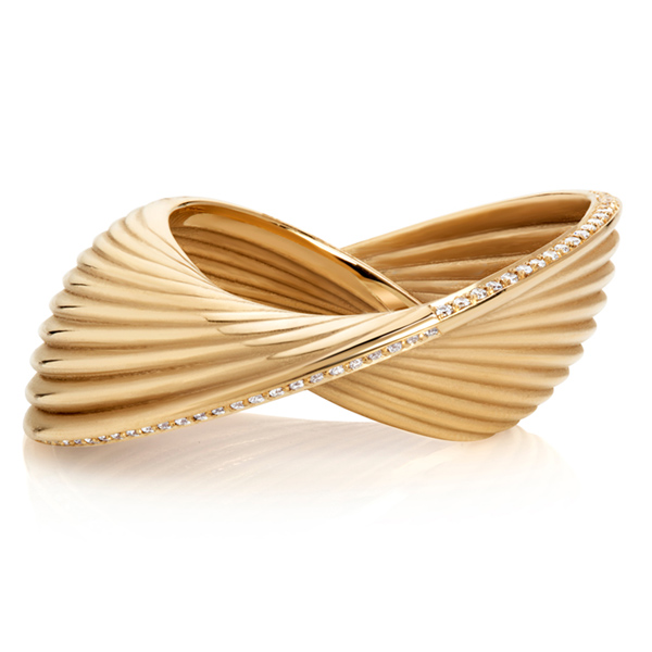 Top: Vortex ring in 18k yellow gold with diamonds, £10,500 ($14,200); Ana Thompson