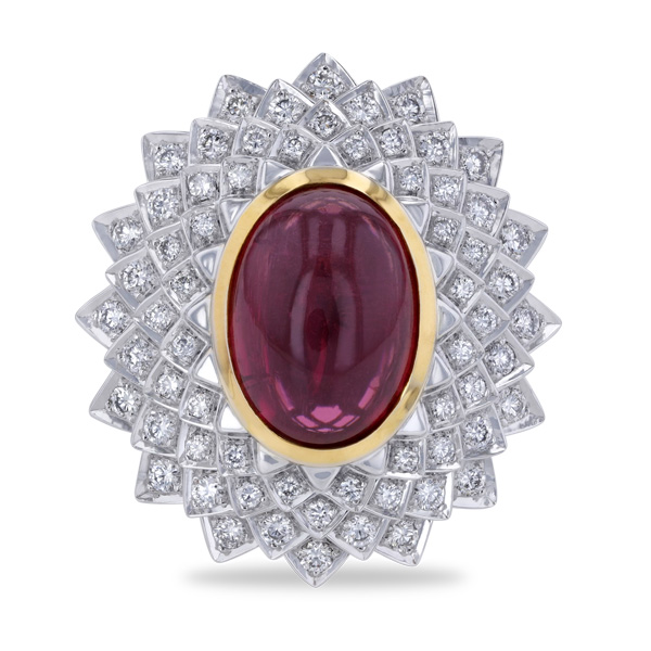 Top: Majestic Qajar ring in 18k gold with garnet and diamonds, price on request; Toktam