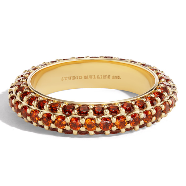 Top: Milly band in 18k yellow gold with 2.88 cts. t.w. garnet, $3,400; Studio Mullins