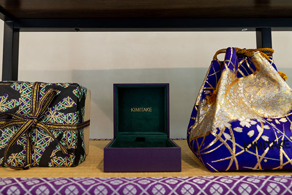 Kimitake packaging—designed by Fukutani, who has worked in accessories for more than two decades—reflects the brand’s attention to detail. It is made with Japanese products and crafts, including paulownia boxes from Hiroshima, washi paper from Kochi, and yuzen dyeing from Kyoto, so the experience of unboxing a new jewelry piece becomes a celebration of Japanese culture, says Fukutani.