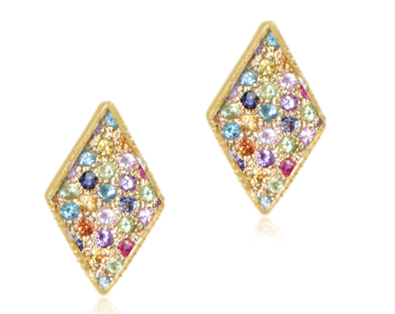 Cléo stud earrings in 14k yellow gold with multicolor sapphires, $975; Anzie