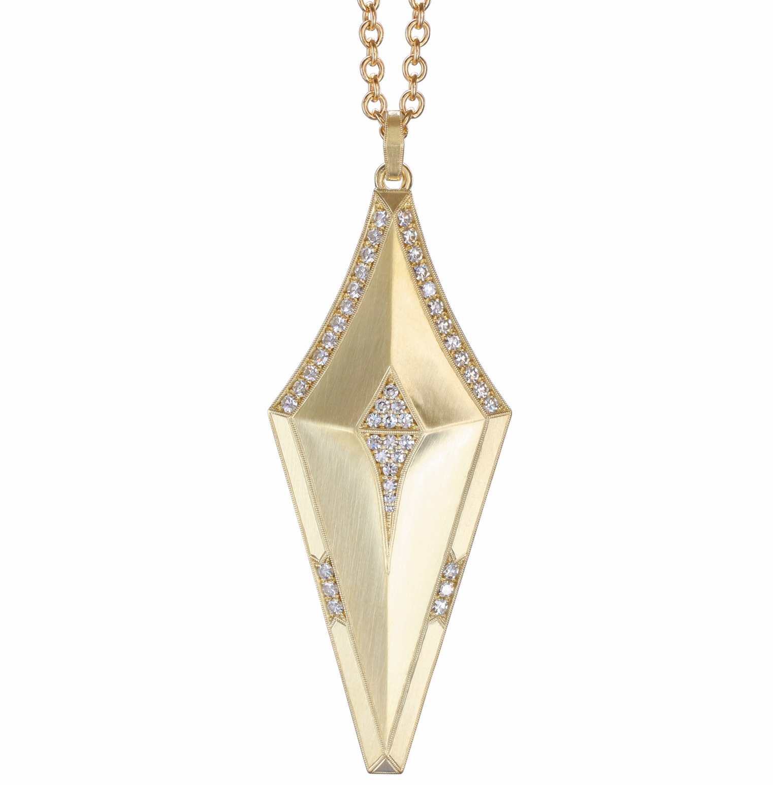Large Shield pendant in 18k yellow gold with 0.35 ct. t.w. single-cut diamonds, $13,640; Erika Winters Fine Jewelry