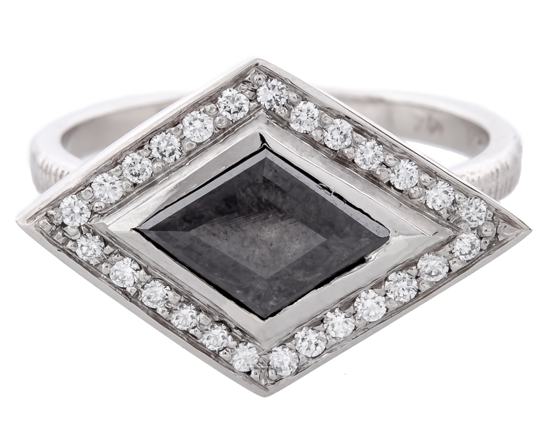 Stormy Grey ring in 14k white gold with 0.46 ct. gray kite-shape diamond and 0.14 ct .t.w. diamonds, $1,910; Kaali Designs