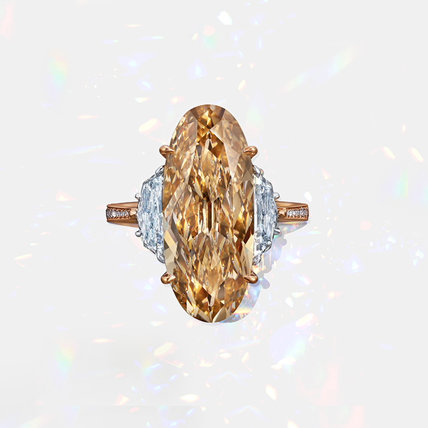 The trends he’s seeing in the marketplace—antique diamonds, elongated cuts such as movals, and unconventional cognac hues—are nothing new for Katz. “I’ve always liked unusual stones and diamond cuts,” he says. “I’ve been in this game forever.” As proof, he singles out the “magnificent champagne rose” cushion-cut diamond engagement ring he made for the actress and writer Erin Foster in 2019.