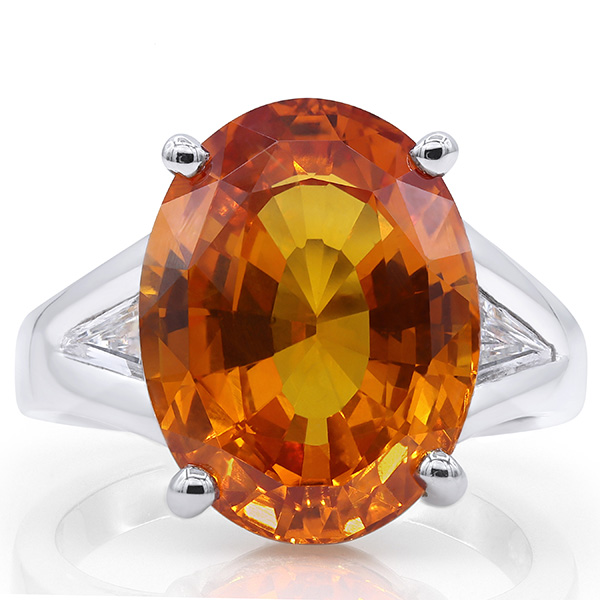 Top: Platinum ring with 10.68 ct. oval orange sapphire and diamonds, $70,000; Oscar Heyman