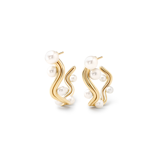 Top: Double Curva hoop earrings (large) in 14k Fairmined yellow gold with white akoya cultured pearls; $4,239; Vanessa Fernández