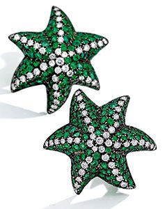 A pair of emerald and diamond ear clips.