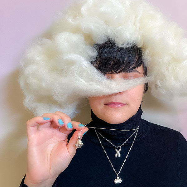 These sculptural charms are little “guardians,” Pryde says—characters with personalities and the power to address emotions, such as fear, grief, or isolation. The artist (who prefers using the pronoun they) hopes the pieces offer comfort to wearers while also serving style and adding a touch of dark humor to their jewelry wardrobes.