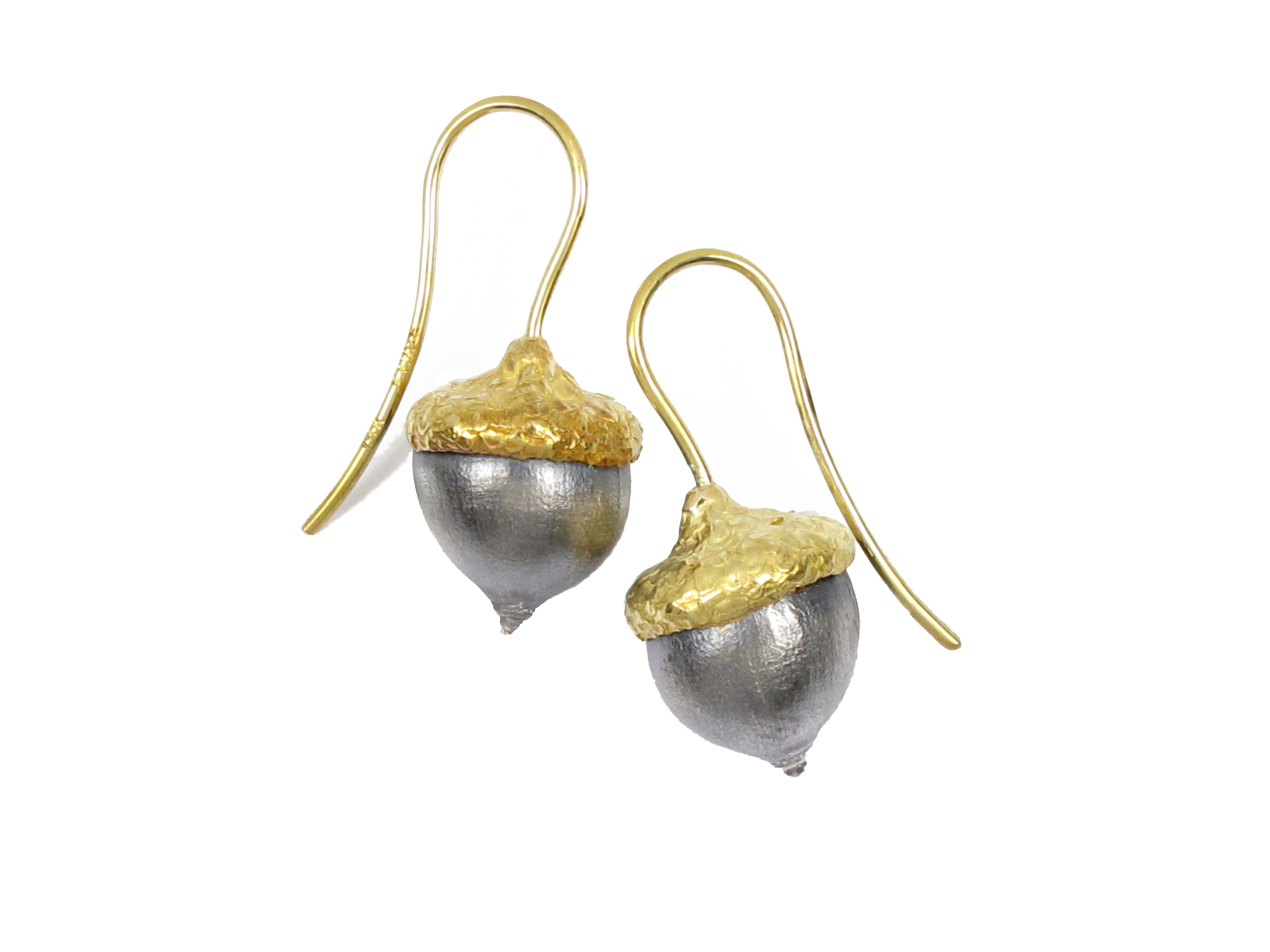 Acorn Earrings in 18k yellow gold and sterling silver, $1,475; Mimi Favre