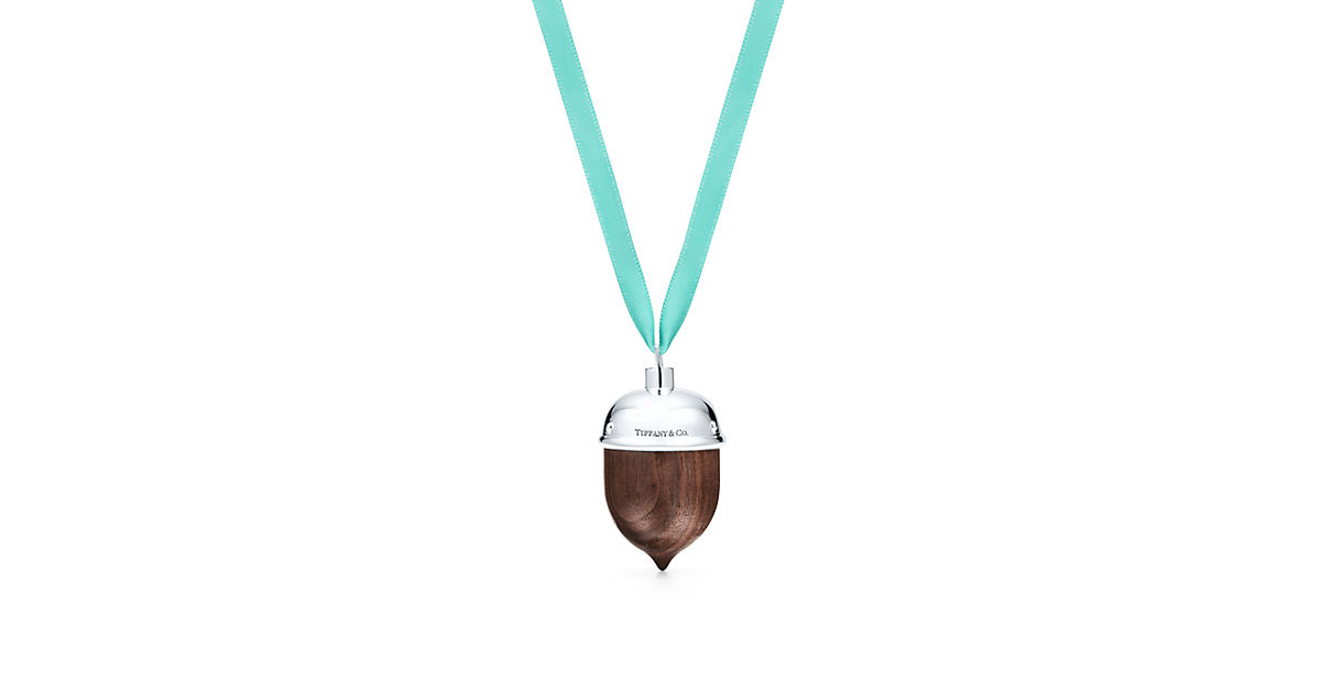 Acorn Ornament in American walnut and sterling silver on a Tiffany Blue® ribbon, $145; Tiffany & Co.