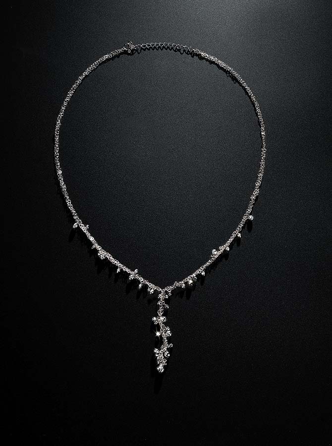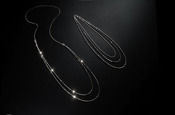 Platinum bracelets and earrings will accompany the collection as complements to the necklaces.