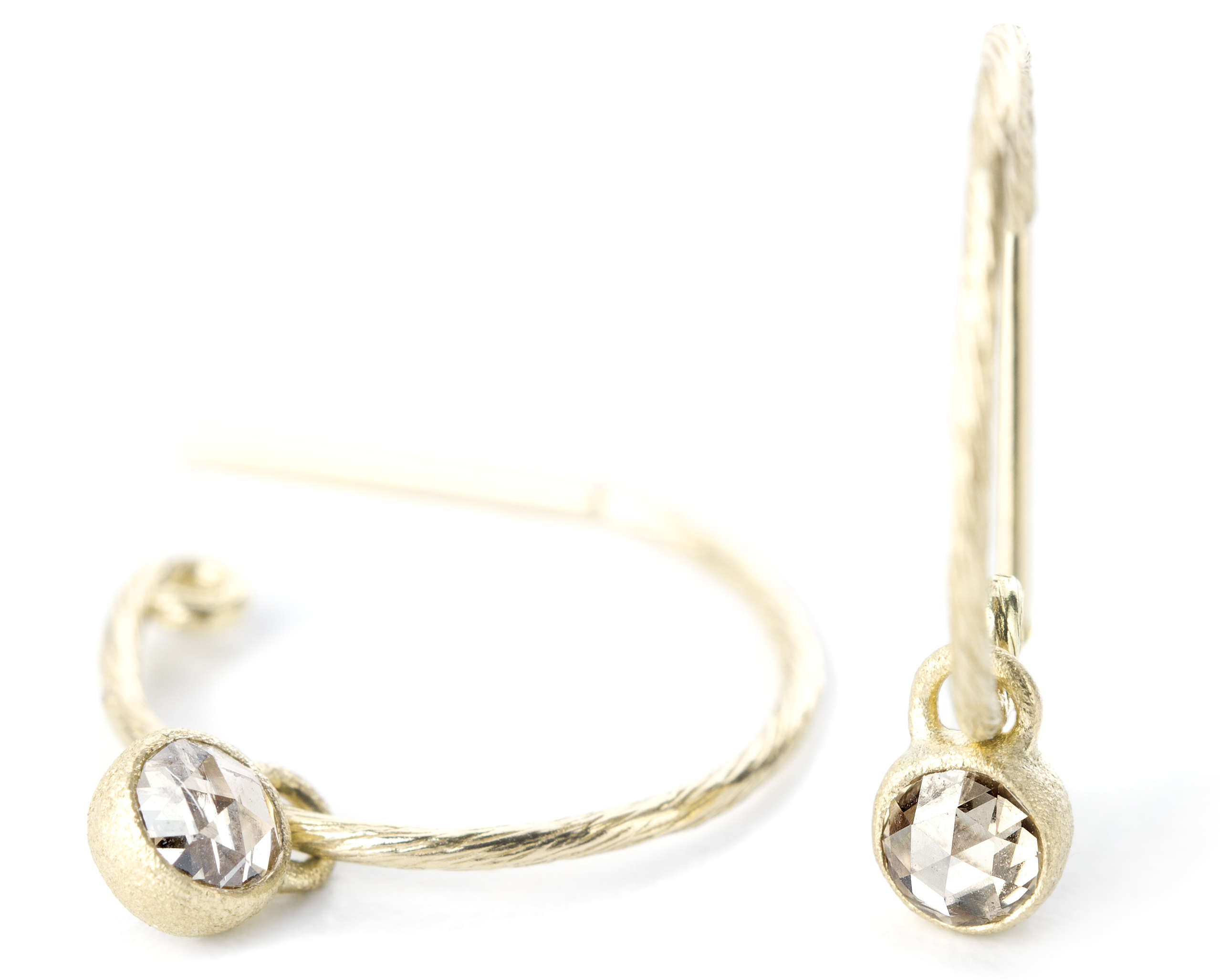 Adorn earring charms in 14k yellow gold with champagne diamonds, $500 (hoops sold separately, $150); Nina Nguyen