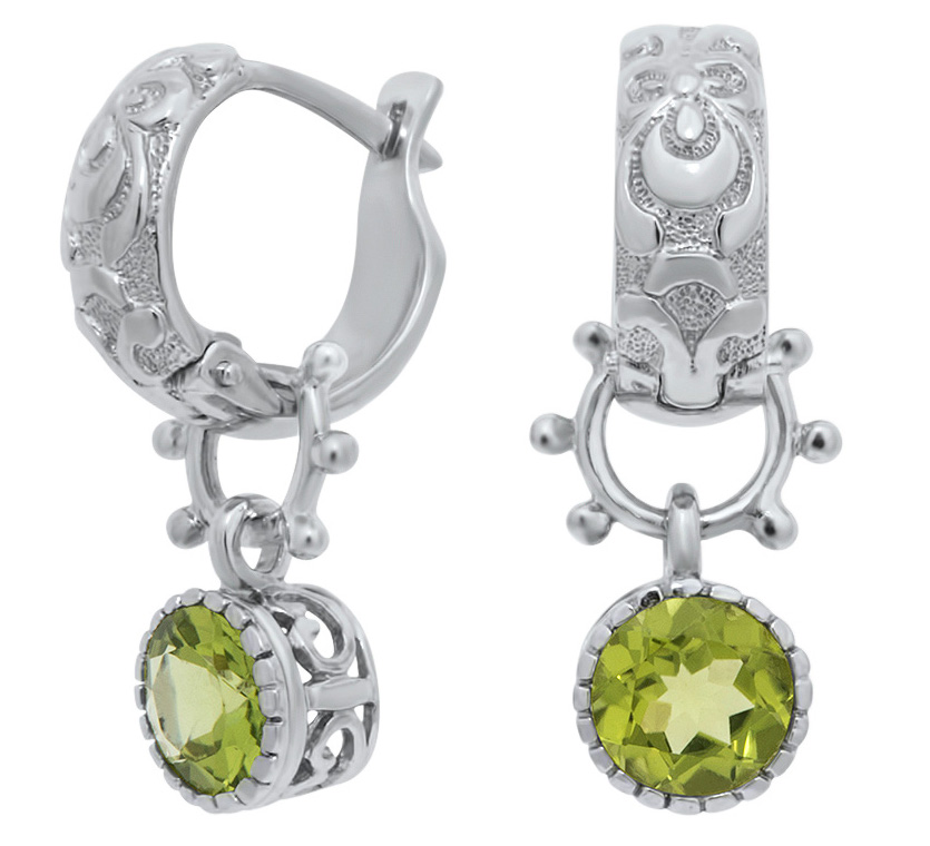 Hoop and charm drop earrings in sterling silver with peridot, $137; Drukker