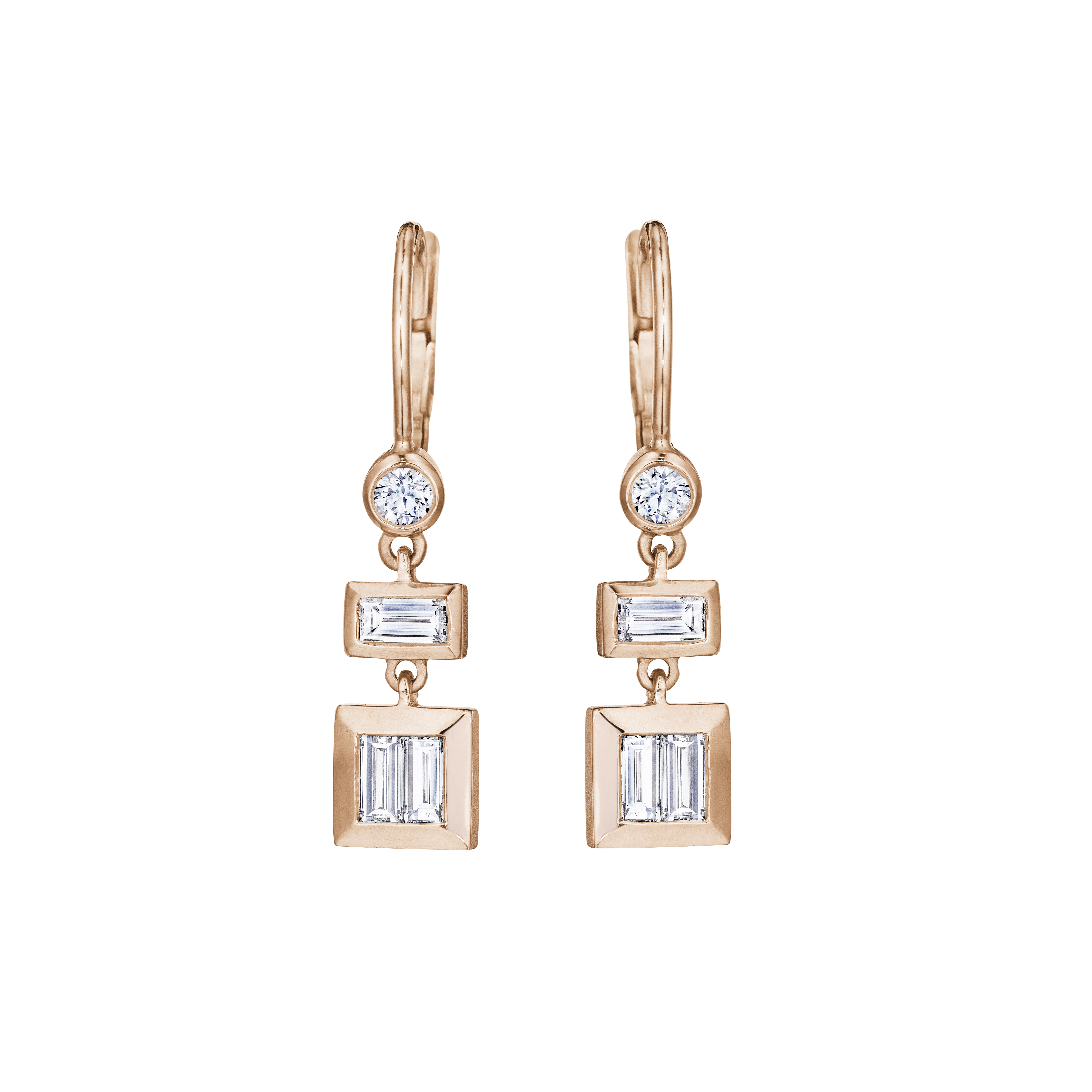 Moderne Small Everyday Deco earrings Moderne Small Everyday Deco earrings with round and baguette diamonds in 18k rose gold