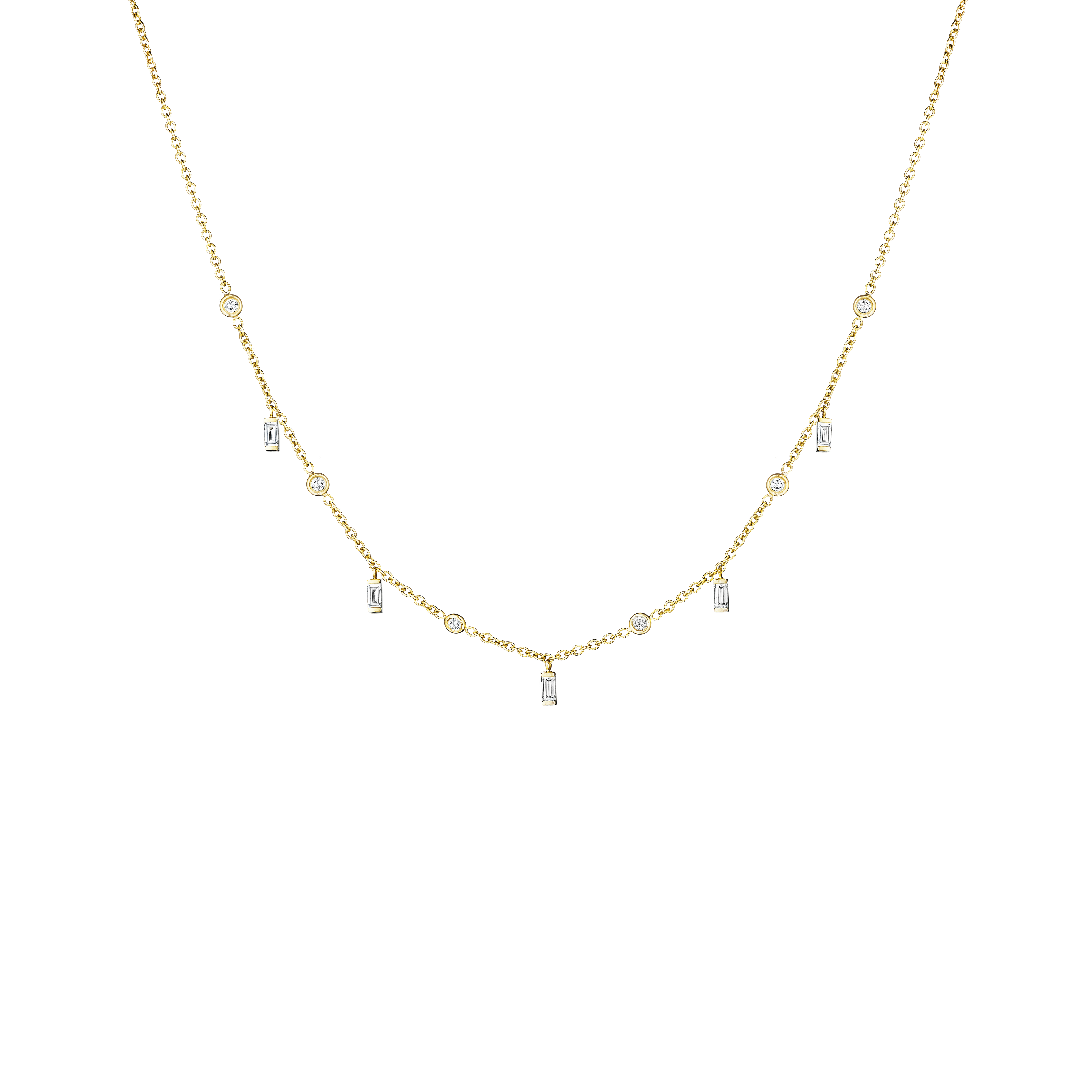 Moderne Layering Chain Necklace Moderne Layering Chain Necklace with baguettes and round diamonds in 18k yellow gold