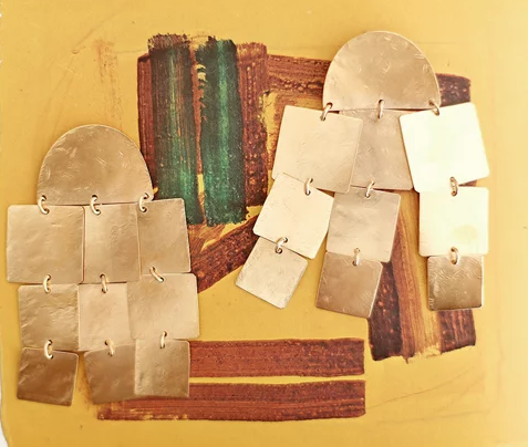 Gold-plated silver and onyx square earrings, $340; Solomeina