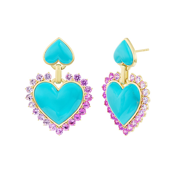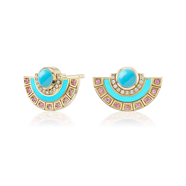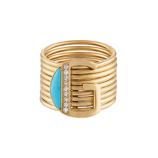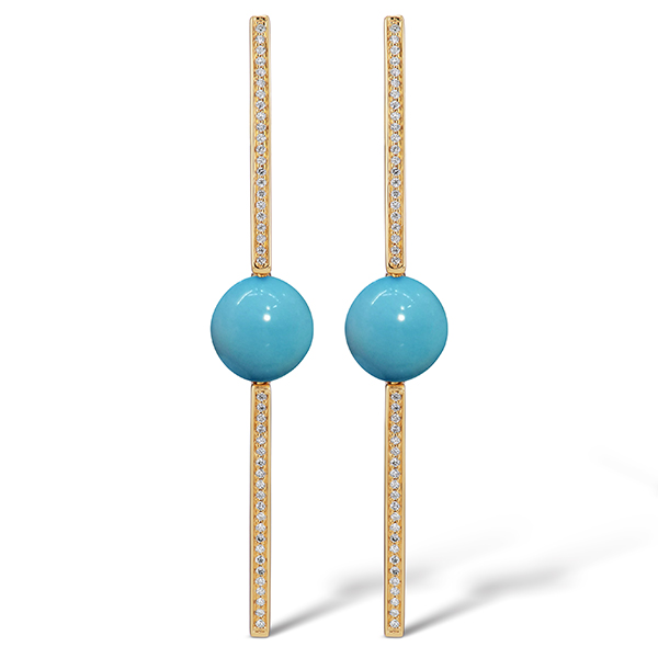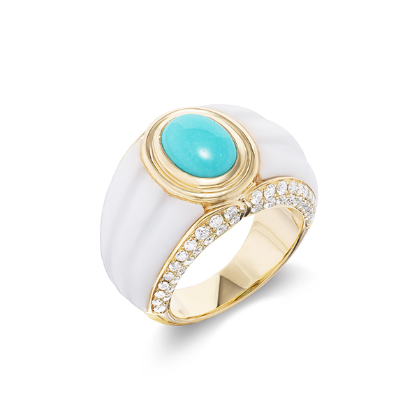 The turquoise jewels that occupy the highest realms of the designer jewelry universe now regularly feature the gem set in 18k yellow gold, peppered with diamonds and the occasional colored stone (turquoise and pink sapphire is an especially popular pairing, followed closely by the blue gem combined with white onyx, white agate, cocholong, or other white hard stones for a super summery look).