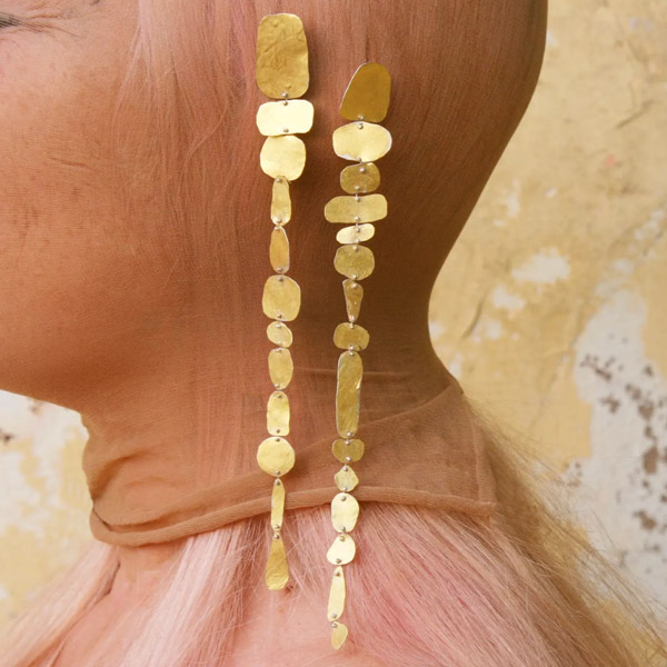 Salomé, by the Barcelona, Spain–based Adoro Mi Oro, is inspired by Richard Strauss’s Dance of the Seven Veils. “Through the flowing movement of the over length earrings a sense of dignity, of tallness, uprightness, mystic, and elegance is arising,” reads a note on the collection.