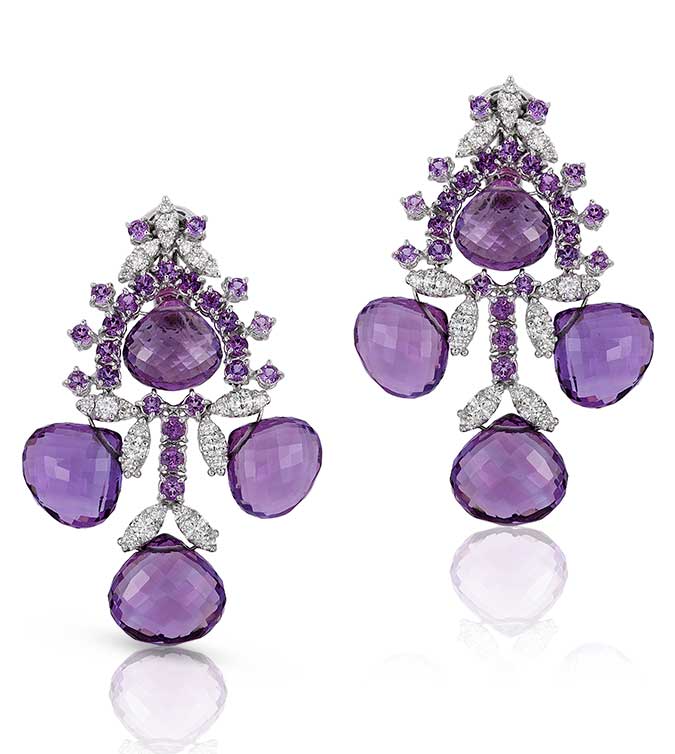 Earrings with 71.13 cts. t.w. amethyst and 2 cts. t.w. diamonds in 18k gold; price on request; Andreoli; 212-582-2050; andreoliusa.com