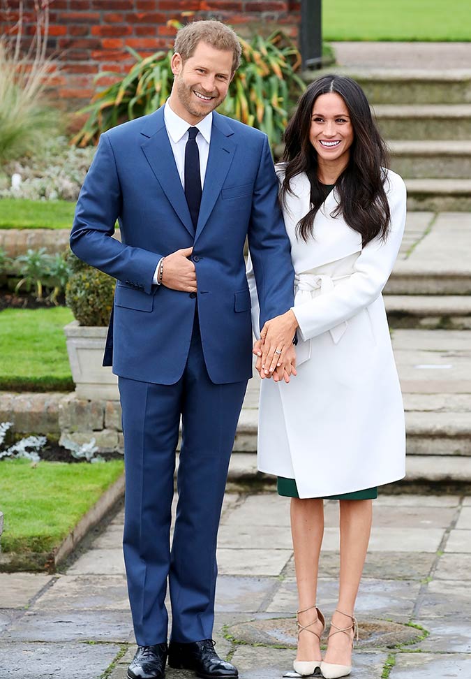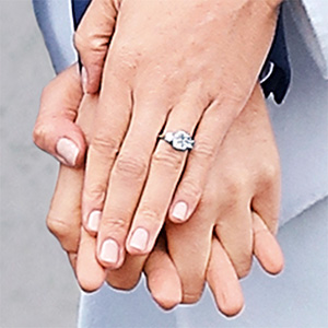 Prince Harry and actress Meghan Markle set the internet ablaze Nov. 27 when Kensington Palace broke news of the couple’s engagement followed by adorable photos of the pair looking completely smitten. Markle, wrapped in a chic cream-colored coat, donned two memorable pieces of jewelry for her first royal portrait session: a stunning 18k yellow gold three-stone–style engagement ring and a pair of opal studs set in 18k yellow gold. The earrings, from Canadian jewelry brand Birks, retail for $995. But the ring, which was fabricated by Queen Elizabeth II’s official jeweler, Cleave and Co., is essentially priceless: Prince Harry designed it himself, using two diamonds that belonged to Princess Diana to flank a center stone mined in Botswana, the African country where the couple recently camped out together under the stars.