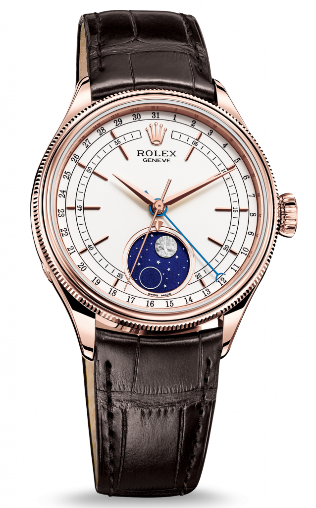 (Above) Cellini Moonphase in 39 mm Everose gold case; $26,750; Rolex; 800-36-ROLEX; rolex.com