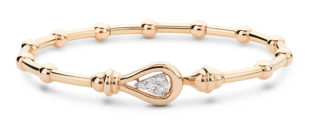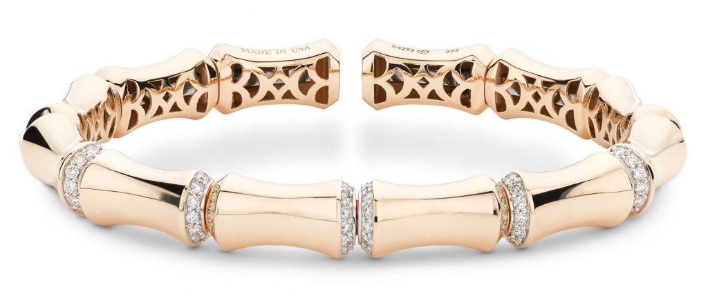 New York City’s Christopher Designs is famous for its innovative Crisscut diamonds, which feature light-enhancing crisscrossed facets. But the brand’s penchant for precision also extends to its jewelry. The latest collection—a series of intricately fabricated bracelets that stack up beautifully—marries curvaceous, understated 14k white and yellow gold with diamonds. “I wanted to create a timeless collection that represents the modern-yet-classic woman,” says company founder and designer Christopher Slowinski. Collection standouts include a bamboo-inspired bangle with round diamond accents and a yellow gold bracelet that curves into a loop to lasso a gleaming 0.32 ct. L’Amour Crisscut pear-shape diamond.
