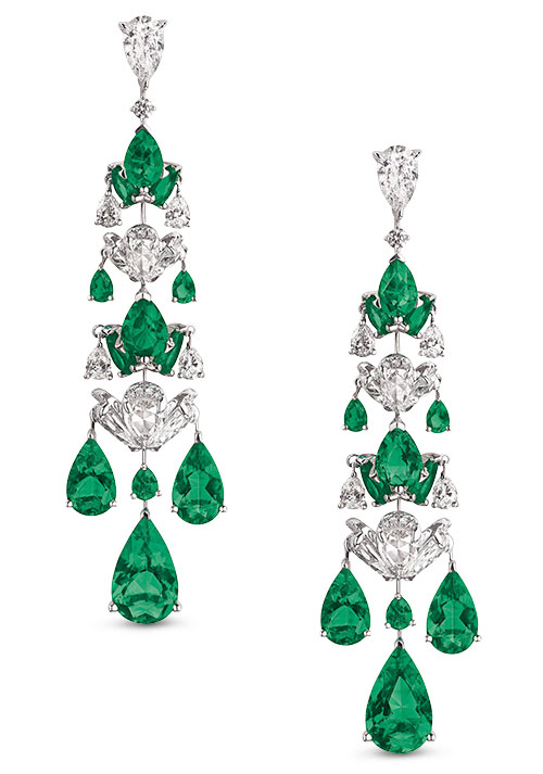 Emerald Waterfall earrings with Jasmine-cut diamonds; price on request; Nirav Modi; 212-603-0000; niravmodi.com