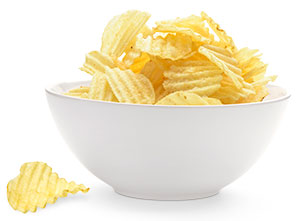 Guilty pleasure: Chocolate, peanuts, and potato chips.