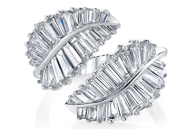 Palm Leaf ring in 18k white gold with 2.6 cts. t.w. baguette diamonds; $11,550; Anita Ko; 424-302-0413; anitako.com