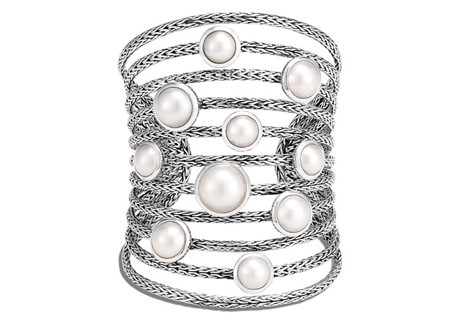 Classic Chain cuff with mabe freshwater pearls in sterling silver; $1,995; John Hardy; 888-838-3022; johnhardy.com