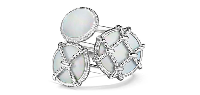 Isola ring in sterling silver with mother-of-pearl; $450; Judith Ripka; concierge@judithripka.com; judithripka.com