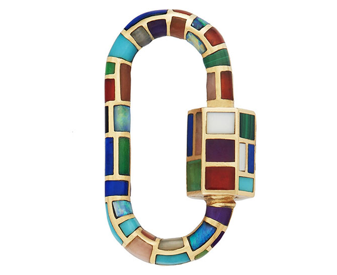 The Linda Lock all-inlay lock with 64 stones in 18k yellow gold; $17,000; Marla Aaron; 646-799-1434; marlaaaron.com